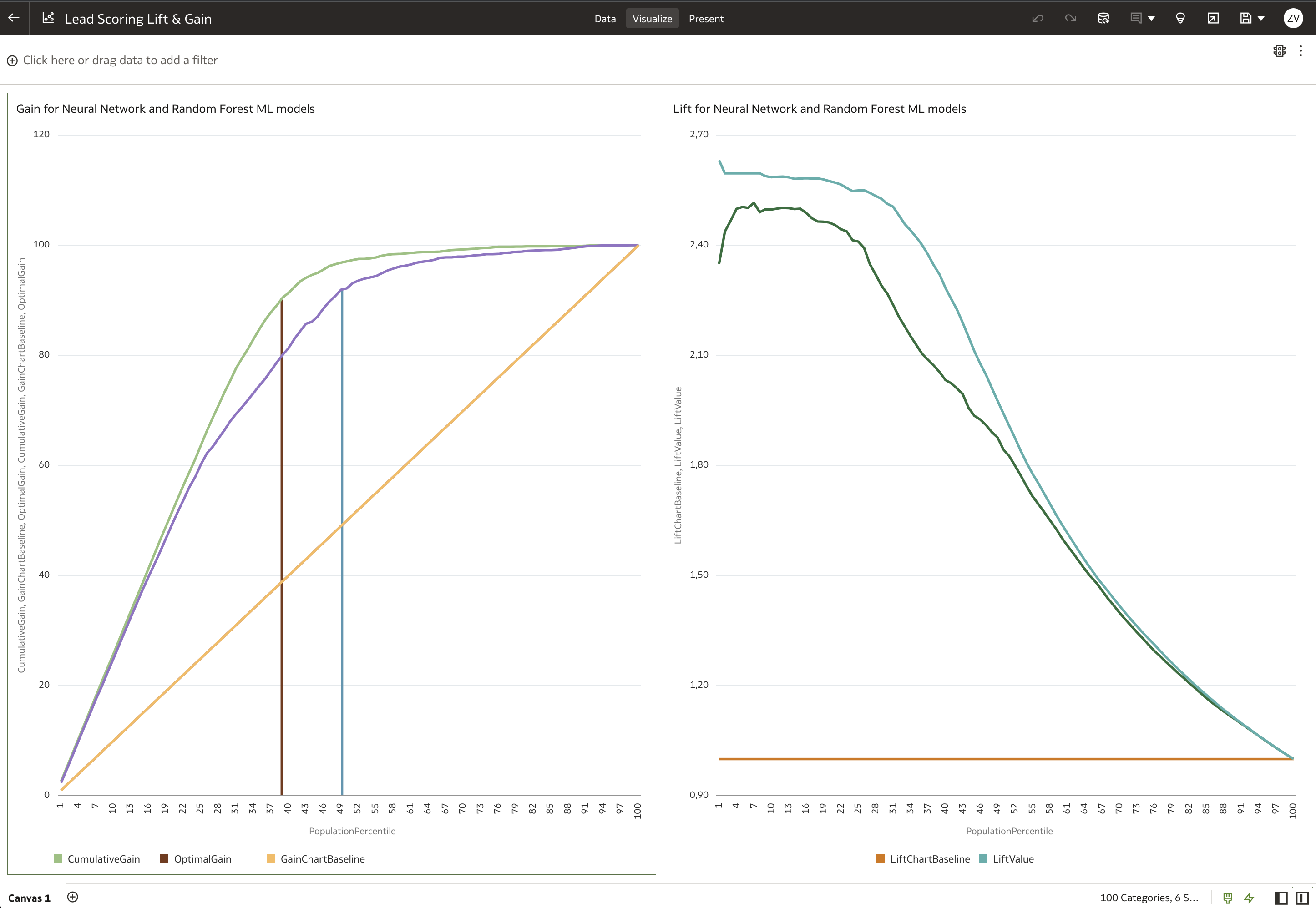 Figure 4: Presenting Lift and Gain charts for Machine Learning based prediction